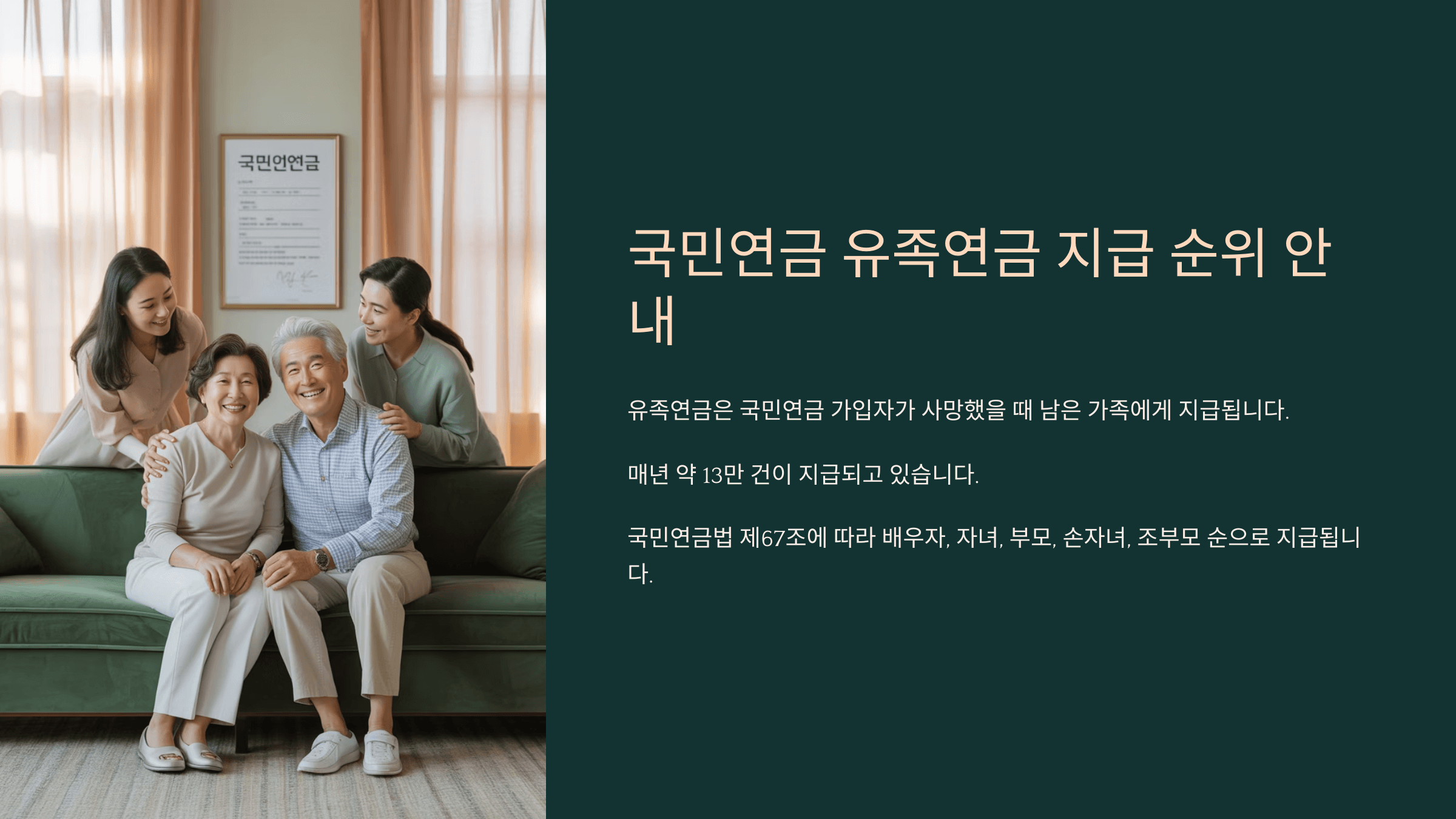 뿐만 아니라 배우자가 수급 자격이 없는 경우, 자녀가 받을 수 있는 조건, 유족 간 분쟁이 발생했을 때 어떻게 해결하는지도 자세히 알아보려고 해요. 꼭 필요한 정보만 쏙쏙 골라서 준비했으니 천천히 끝까지 읽어보세요! 😊