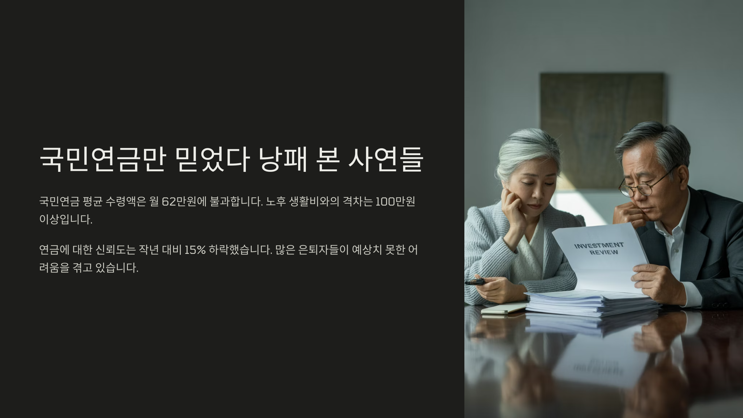 이런 상황은 단순히 ‘가난’이라기보다는 ‘준비 부족’에서 오는 문제라고 볼 수 있어요. 퇴직 전 몇 년 동안이라도 자산 점검과 소득 보완 전략을 세웠다면 지금보다 훨씬 나은 삶을 살 수 있었을 거예요.