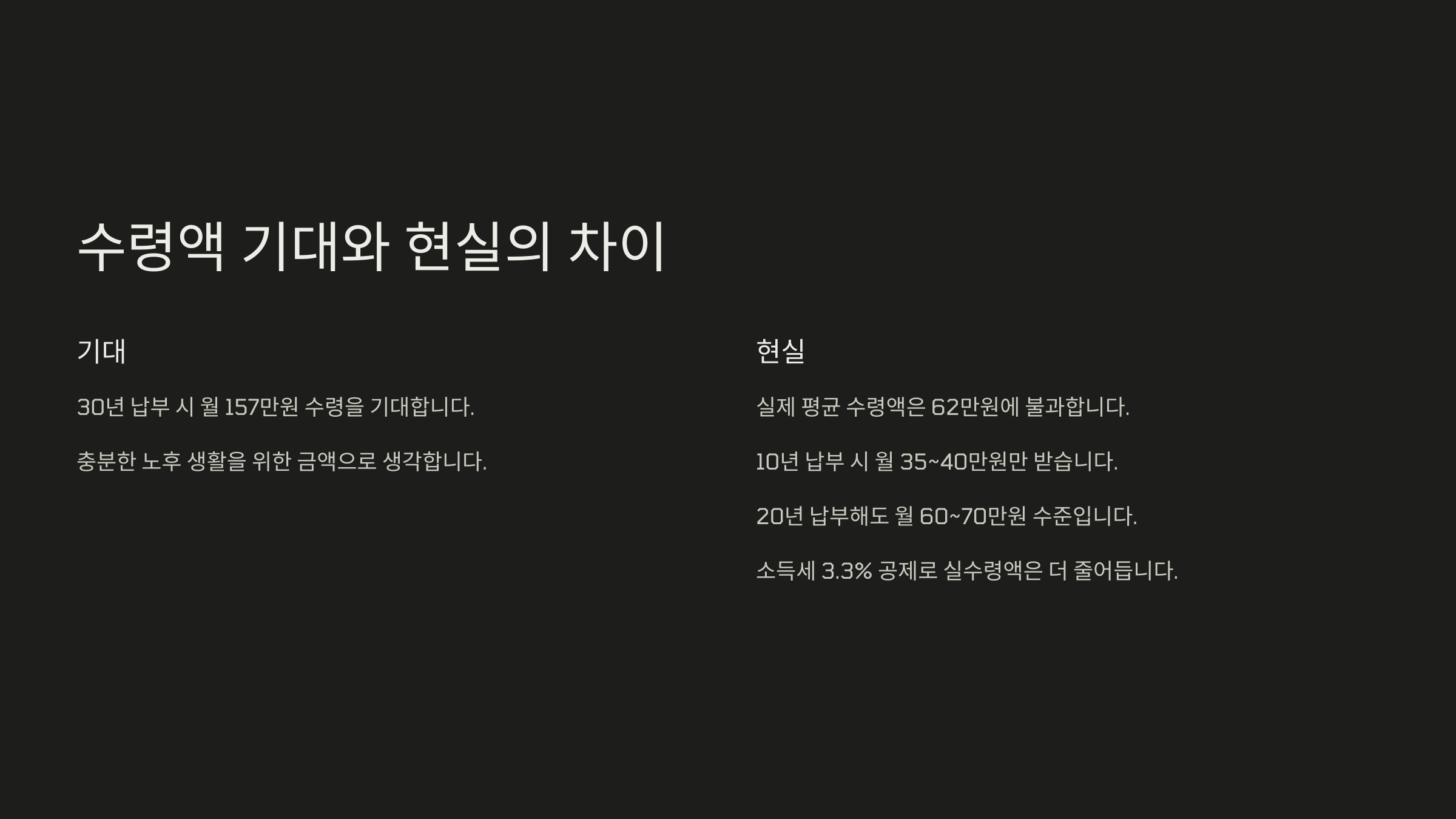 수령액 기대와 현실의 차이