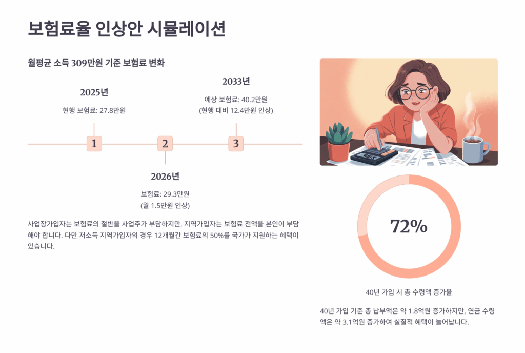 | 보험료 인상 | 9%→13% | +15년 | 가처분소득 감소 |