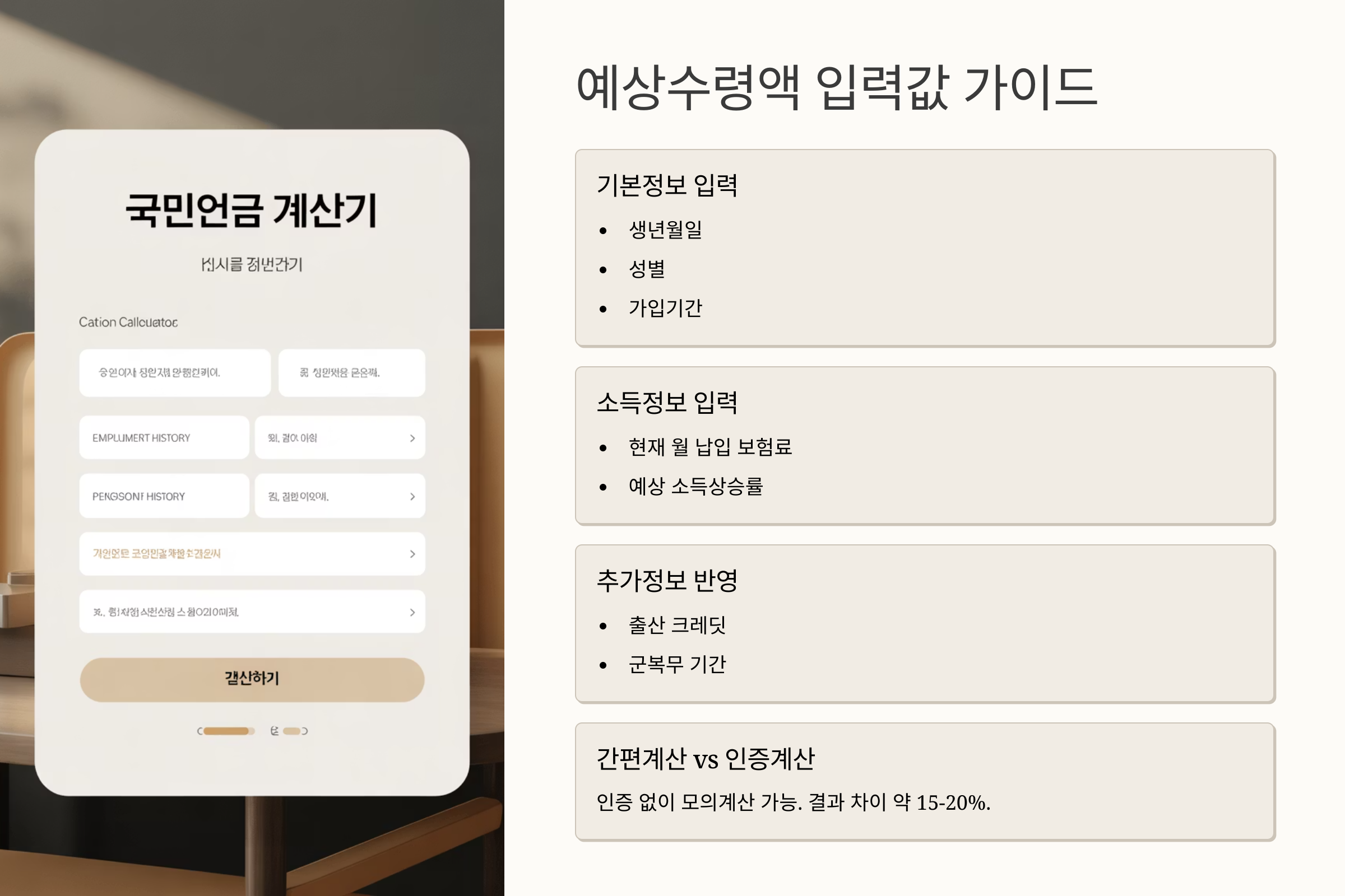 필요한 정보는 연금 가입 기간, 월 평균 소득, 납입 개월 수, 기대 수령 나이 등인데요, 이 수치들을 제대로 입력해야 결과가 신뢰성을 가질 수 있어요. 저는 2025년 현재 기준으로 15년 이상 가입했고 월소득은 평균 280만 원으로 입력했어요.