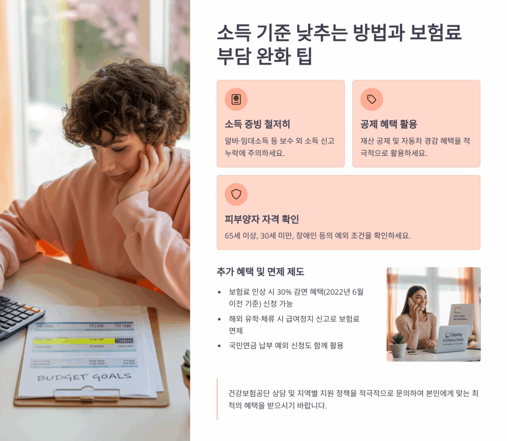 금융소득 관리도 중요한 포인트예요. 이자와 배당소득이 연간 2,000만원을 초과하면 종합과세 대상이 되어 건강보험료가 급증해요. 따라서 예금을 가족 간에 분산하거나, 비과세 상품을 활용하는 전략이 필요해요. ISA 계좌나 연금저축 등 세제혜택 상품을 적극 활용하면 소득을 효과적으로 줄일 수 있답니다.