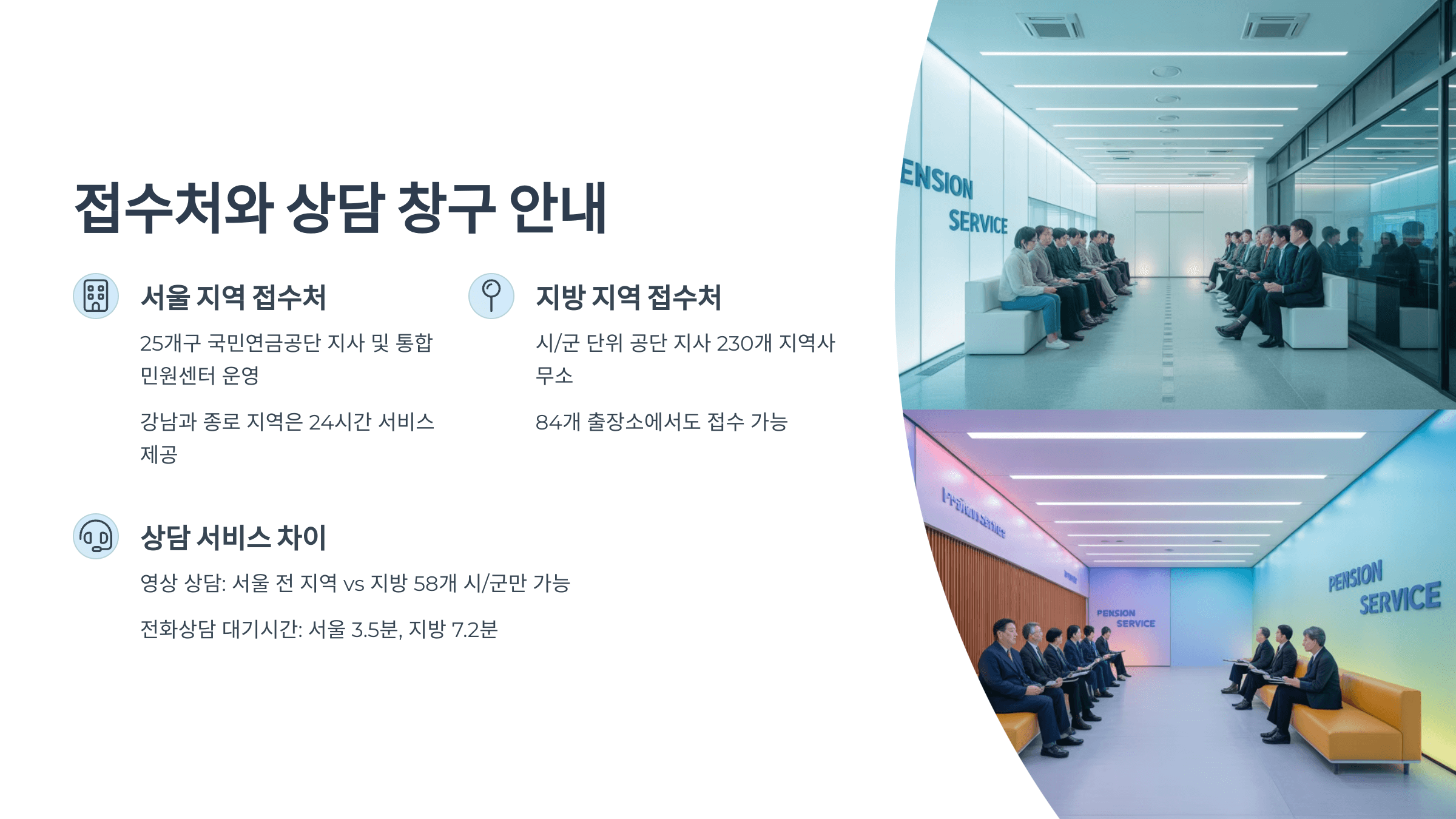 서울과 같은 대도시와 지방의 국민연금공단 지사들은 인력, 인프라, 시스템 운영 방식에서 다소 차이를 보일 수 있어요. 그렇기 때문에 지역에 따라 신청 방법, 민원 처리 속도, 상담 방식 등에서 차이를 체감할 수 있다는 의견이 많아요.