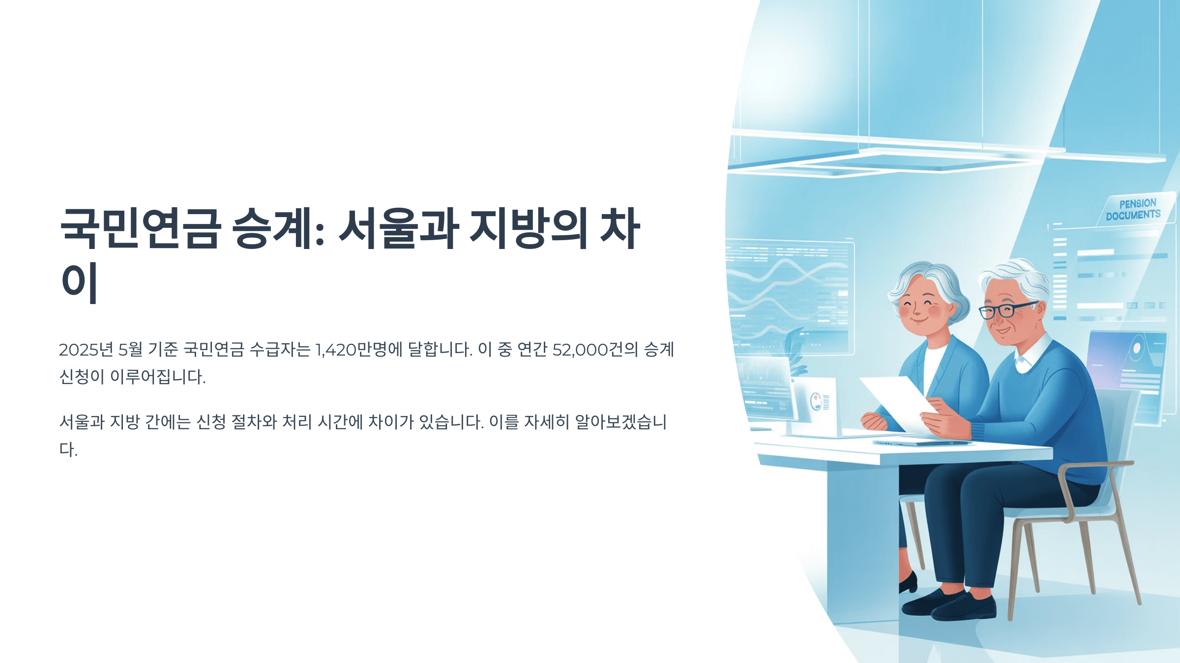 이번 글에서는 서울과 지방에서 국민연금 승계 절차가 어떻게 다른지, 지역별 접수처와 실제 사례까지 자세히 안내해 줄게요. 국민연금 승계를 준비 중이라면 반드시 알고 있어야 할 알짜 정보만 모았어요!