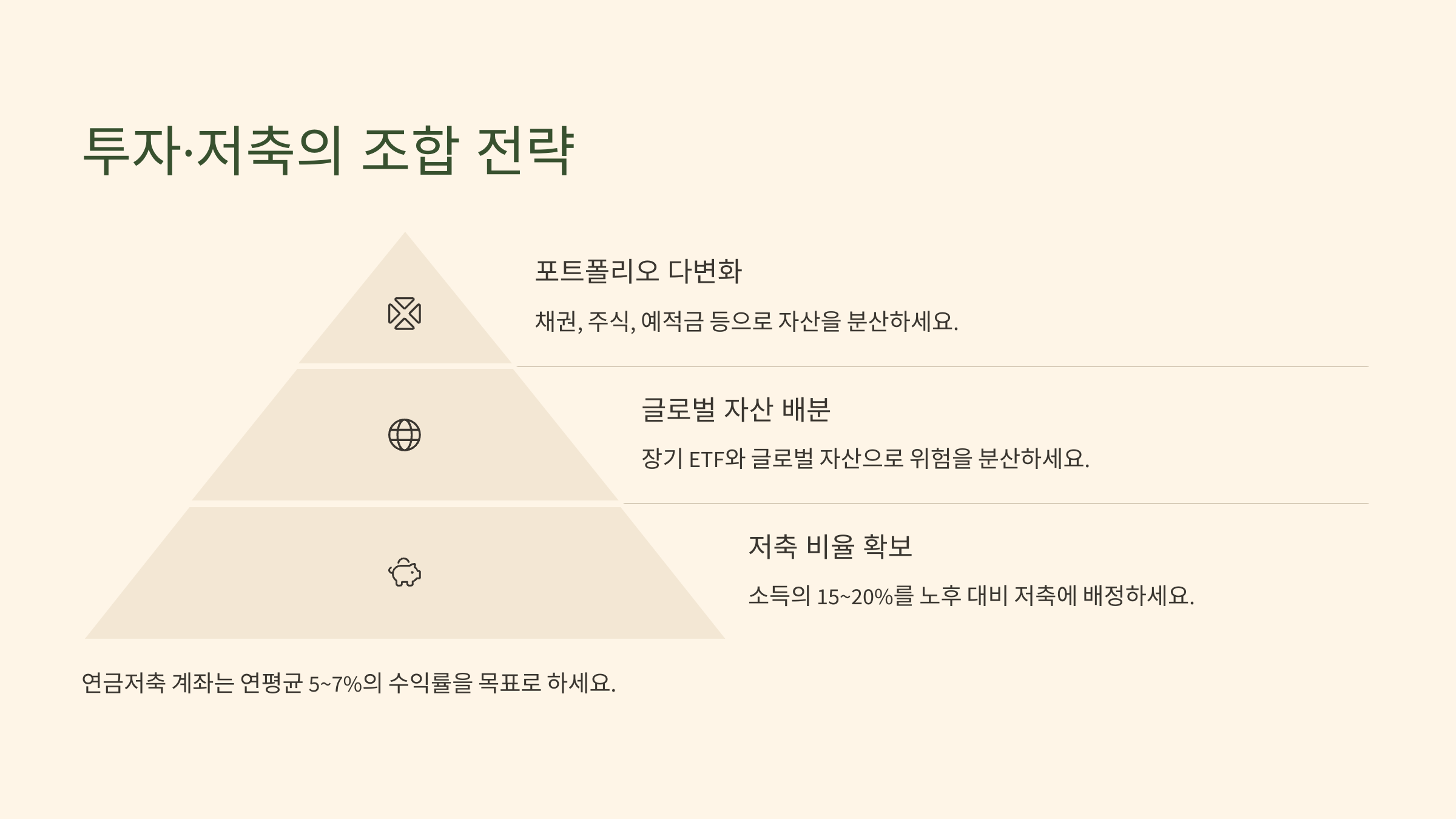 인플레이션 대응은 장기 투자에서 가장 중요한 고려사항이에요. 물가상승률이 연 3%라면 20년 후 현재 100만원의 실질 가치는 약 55만원으로 떨어져요. 따라서 노후 자금은 단순히 명목 금액을 늘리는 것이 아니라 실질 구매력을 유지하고 증가시킬 수 있는 자산에 투자해야 해요. 주식, 부동산, 원자재 등은 인플레이션에 상대적으로 강한 자산이고, 예금이나 채권은 인플레이션에 취약한 자산이랍니다. 특히 장기간에 걸친 노후 준비에서는 인플레이션 방어 자산의 비중을 적절히 유지하는 것이 필수예요.