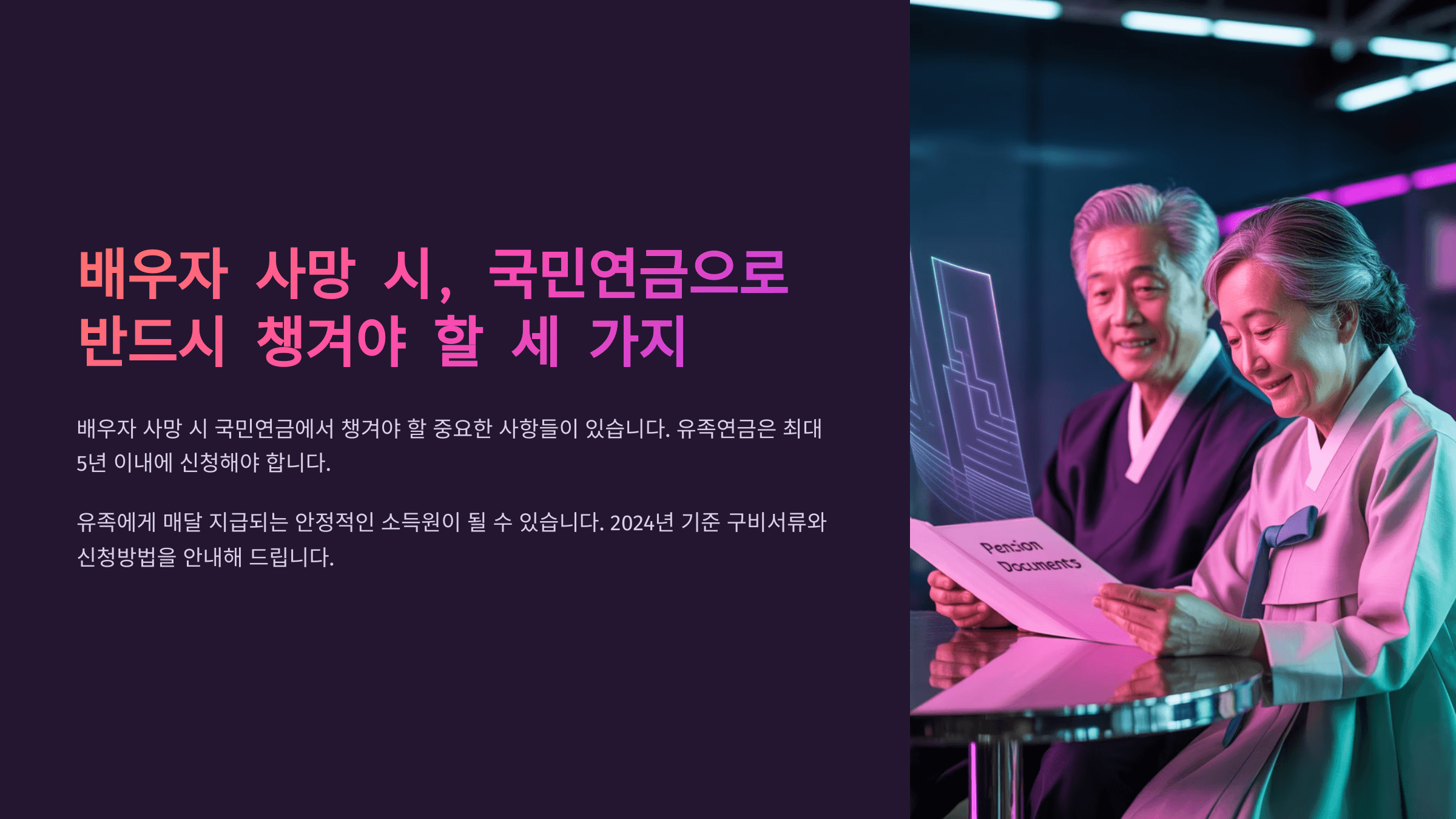 이번 글에서는 배우자 사망 시 반드시 확인하고 챙겨야 할 국민연금 관련 3가지 핵심 사항을 중심으로 설명드릴게요. 실제 사례와 신청 절차도 함께 안내하니까, 놓치지 말고 끝까지 읽어주세요.