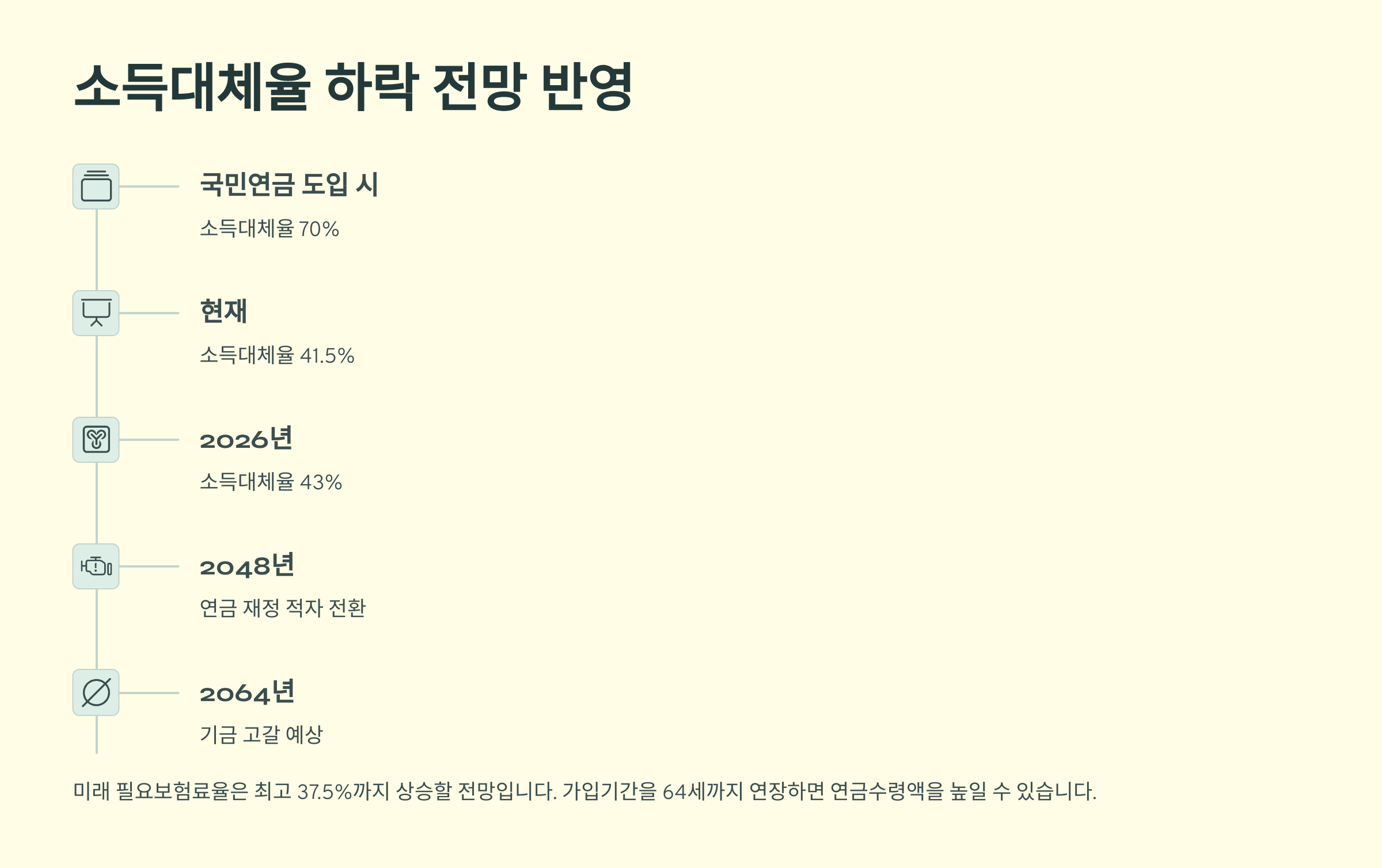 왜 이렇게 낮아질까요? 가장 큰 이유는 인구 고령화와 재정 고갈 우려 때문이에요. 수급자는 늘고 납부자는 줄어들면서 재정적 지속 가능성을 위해 소득대체율을 낮추는 구조 개편이 진행된 거예요.