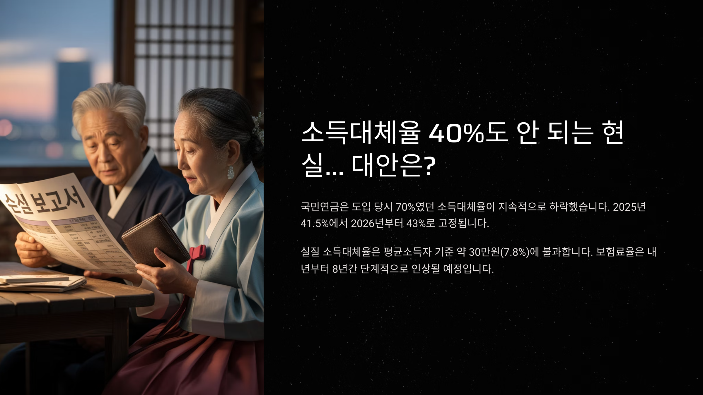 국민연금의 소득대체율이 40%도 안 되는 현실 속에서 많은 분들이 노후 준비에 대한 걱정을 안고 계세요. 2025년 현재 국민연금 평균 수령액은 월 60만원 수준으로, 실제 생활비와는 큰 차이를 보이고 있어요. 이런 상황에서 안정적인 노후를 위해서는 다양한 대안적 준비 방법을 알아두는 것이 중요해요.