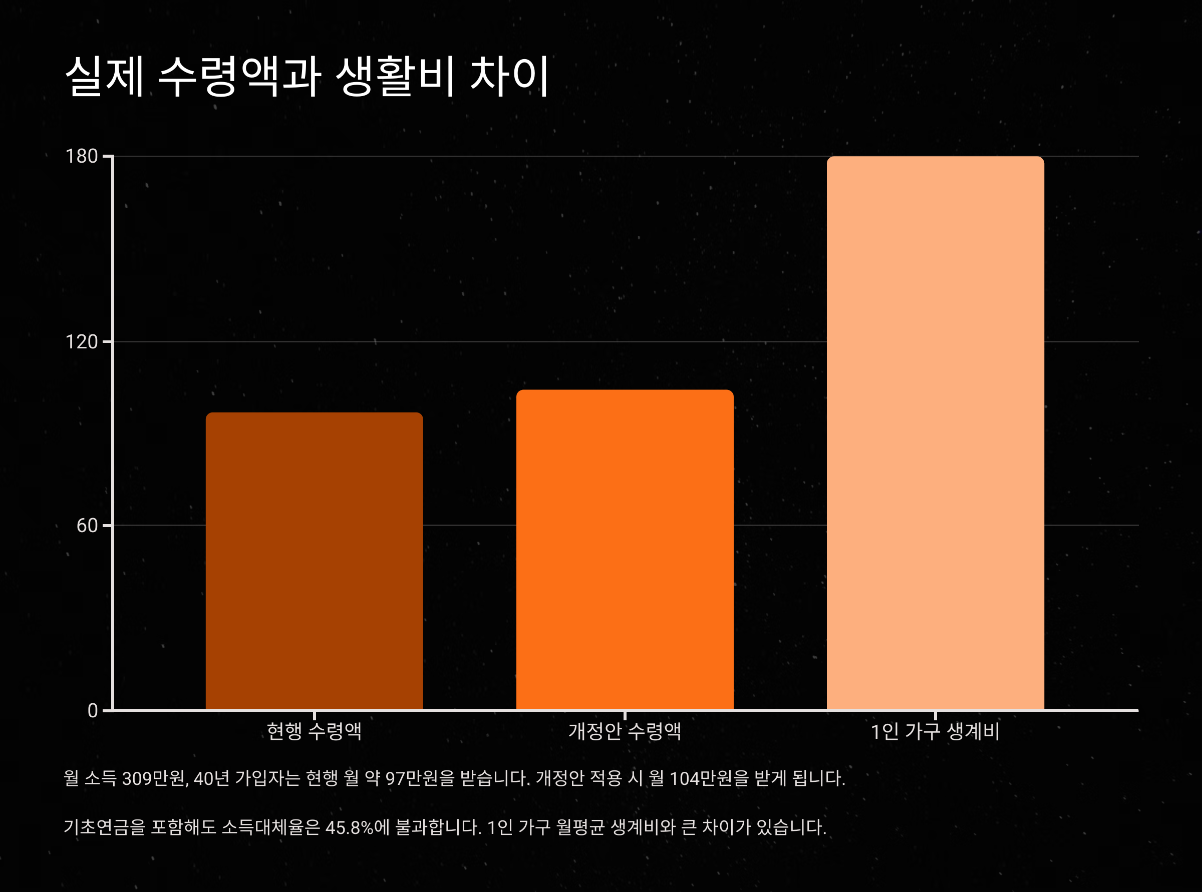 | 구분 | 국민연금 수령액 | 실제 필요 생활비 | 부족액 |