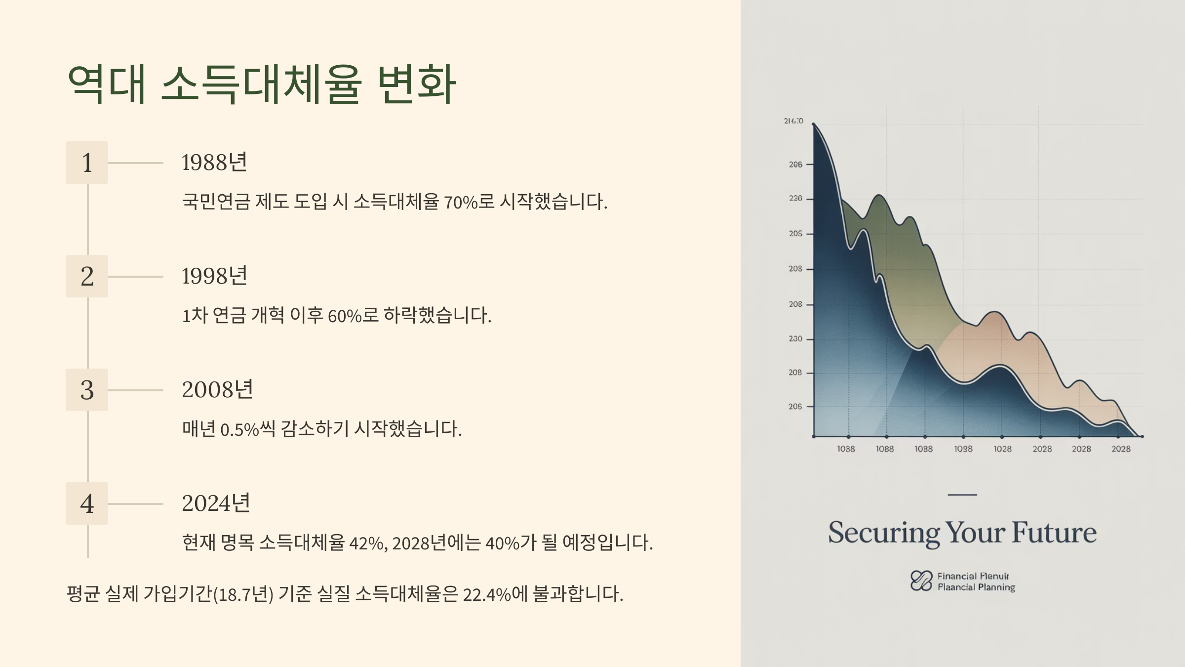 📊 연도별 소득대체율 변화표