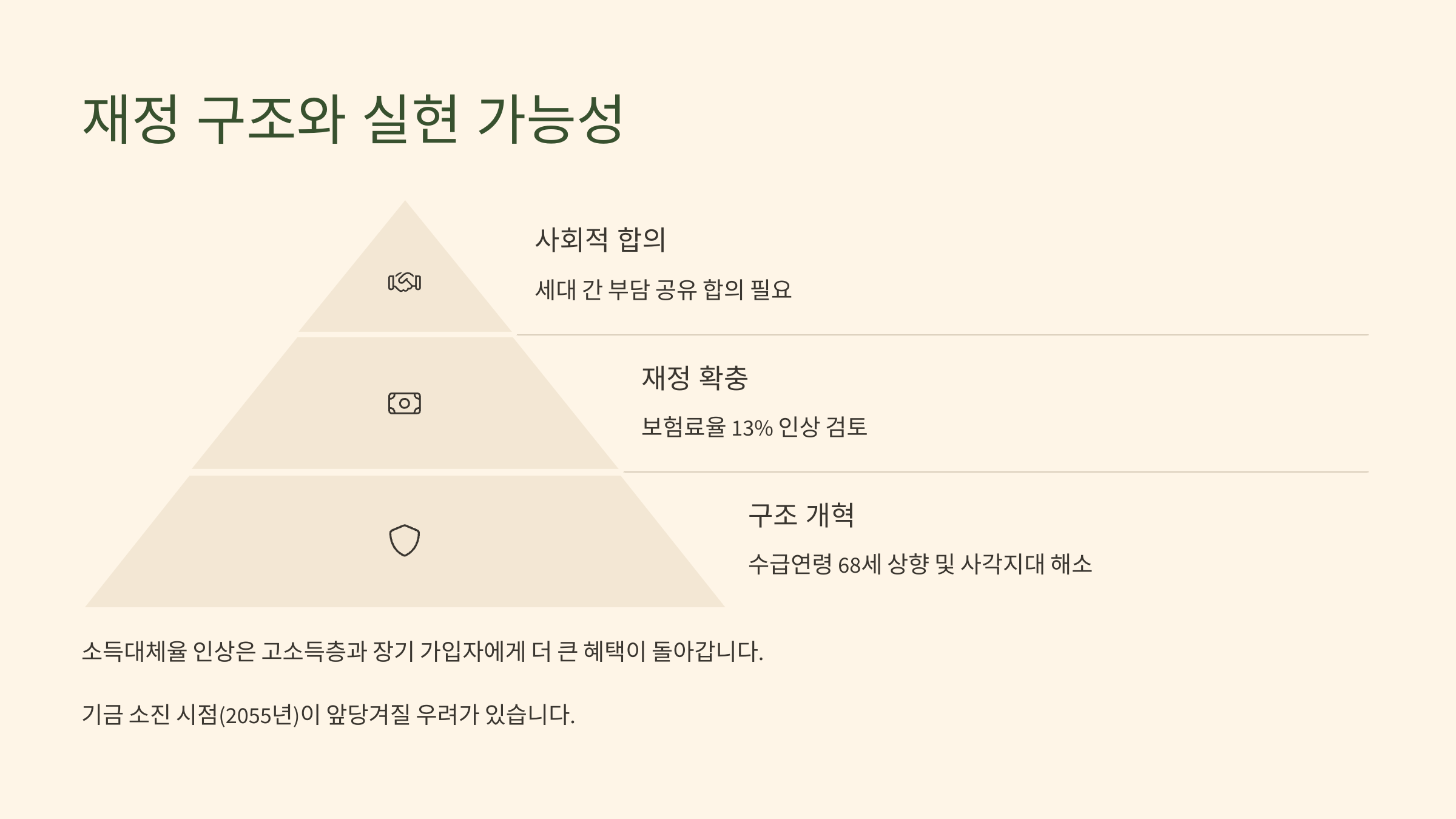 특히 재정의 장기 전망과 함께 청년층에게도 납득 가능한 설명과 보장이 있어야 해요. 그렇지 않으면 오히려 제도 자체에 대한 불신이 커질 수 있어요. 지금은 그 전환점을 어떻게 만들어가느냐가 중요해요.