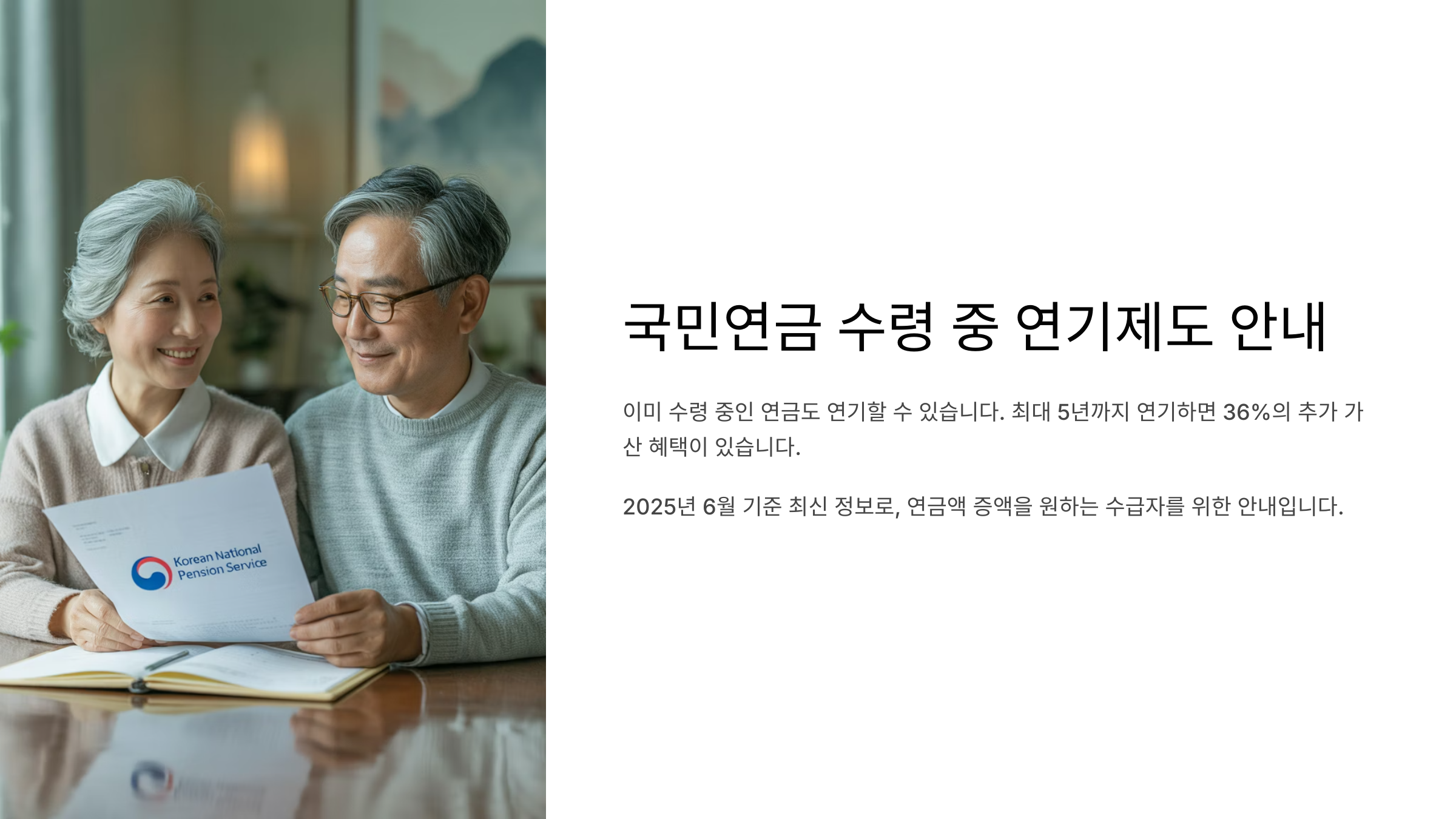 연기수령은 단순히 받는 것을 미루는 게 아니라 나중에 더 많은 금액을 받을 수 있는 전략적 선택이에요. 특히 2025년 현재 기준으로 연기 시 매월 0.6%씩 가산되어 최대 36%까지 증액된 연금을 받을 수 있어 경제적으로 큰 도움이 된답니다.