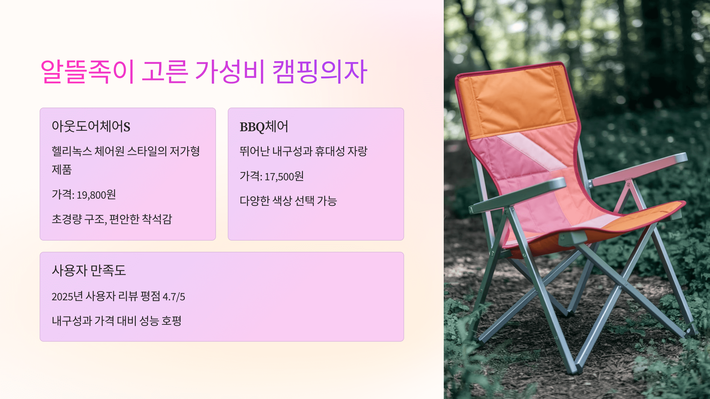 이제 다음으로 넘어가서, 🪑 가성비 좋은 캠핑의자 추천 리스트 보여드릴게요! 다음 내용도 기대해주세요~