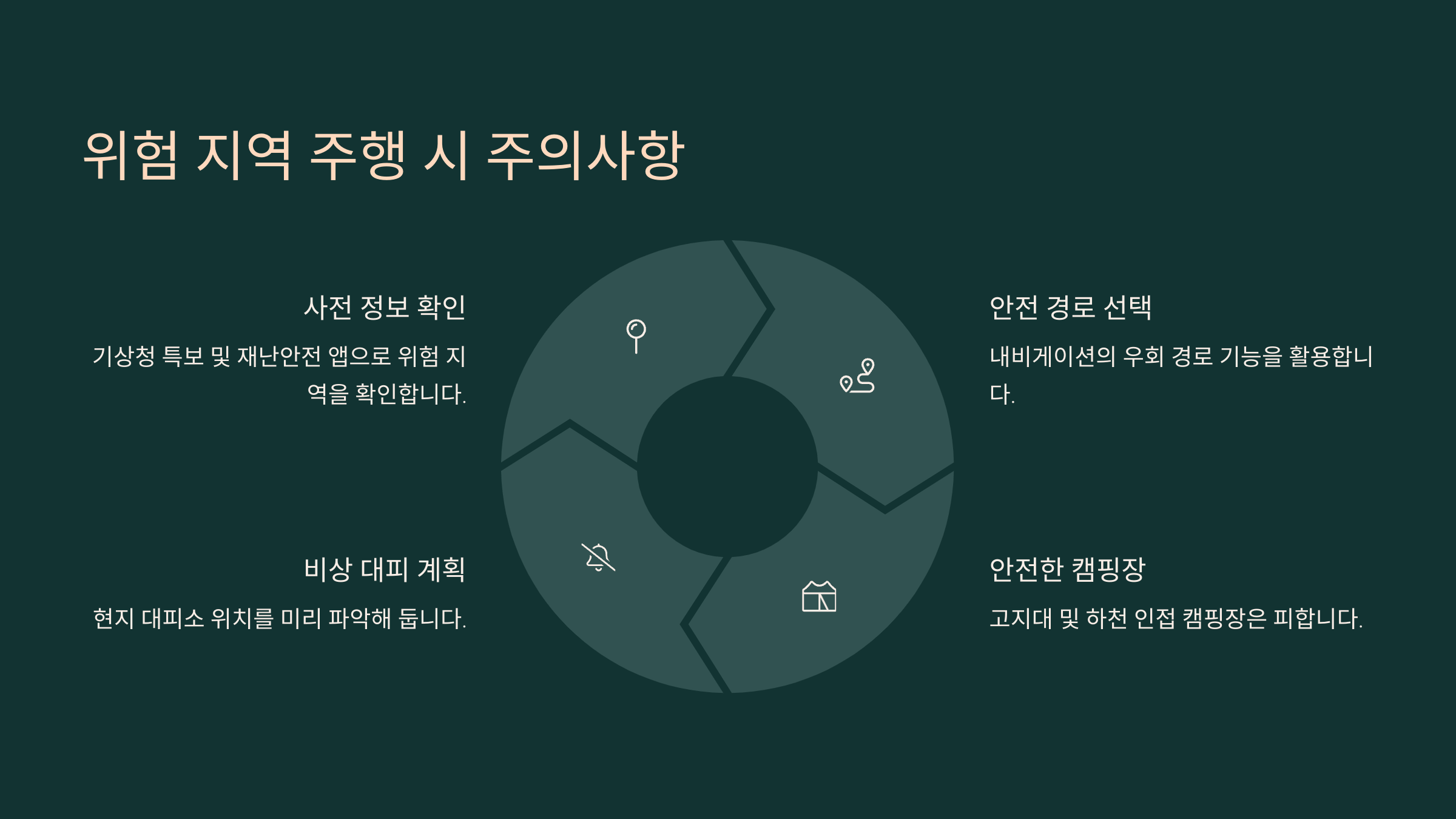 ์บ ํ•‘์นด๋กœ ์—ฌํ–‰ํ•  ๋•Œ๋Š” ์œ„ํ—˜ ์ง€์—ญ ์ฃผํ–‰์— ๊ฐ๋ณ„ํžˆ ์ฃผ์˜ํ•ด์•ผ ํ•ด์š”. ํŠนํžˆ ํญ์šฐ ์˜ˆ๋ณด๊ฐ€ ์žˆ๊ฑฐ๋‚˜ ๊ฐ•ํ’์ฃผ์˜๋ณด, ์ง€์ง„ ๊ฒฝ๋ณด๊ฐ€ ๋ฐœ๋ น๋˜๋ฉด ์ด๋™์„ ๋ฏธ๋ฃจ๋Š” ๊ฒŒ ์•ˆ์ „ํ•ด์š”. ์ด๋Ÿฐ ์ž์—ฐ์žฌํ•ด๋Š” ๋น ๋ฅด๊ฒŒ ์ƒํ™ฉ์ด ๋ฐ”๋€Œ๊ธฐ ๋•Œ๋ฌธ์— ์‹ค์‹œ๊ฐ„ ๋‰ด์Šค๋‚˜ ๊ธฐ์ƒ์ฒญ ์•ฑ์„ ์ˆ˜์‹œ๋กœ ํ™•์ธํ•˜๋Š” ์Šต๊ด€์ด ํ•„์š”ํ•ด์š”.