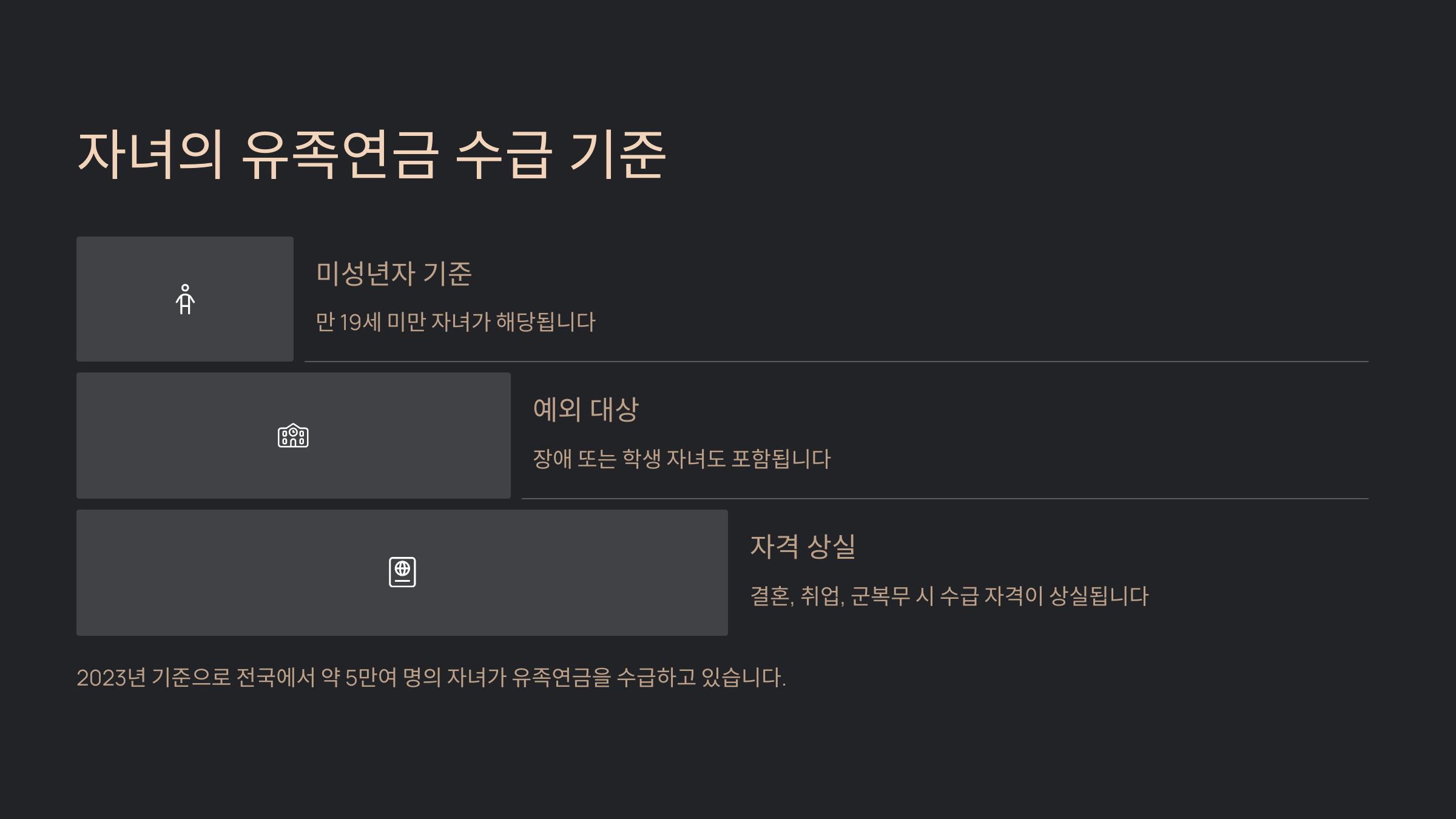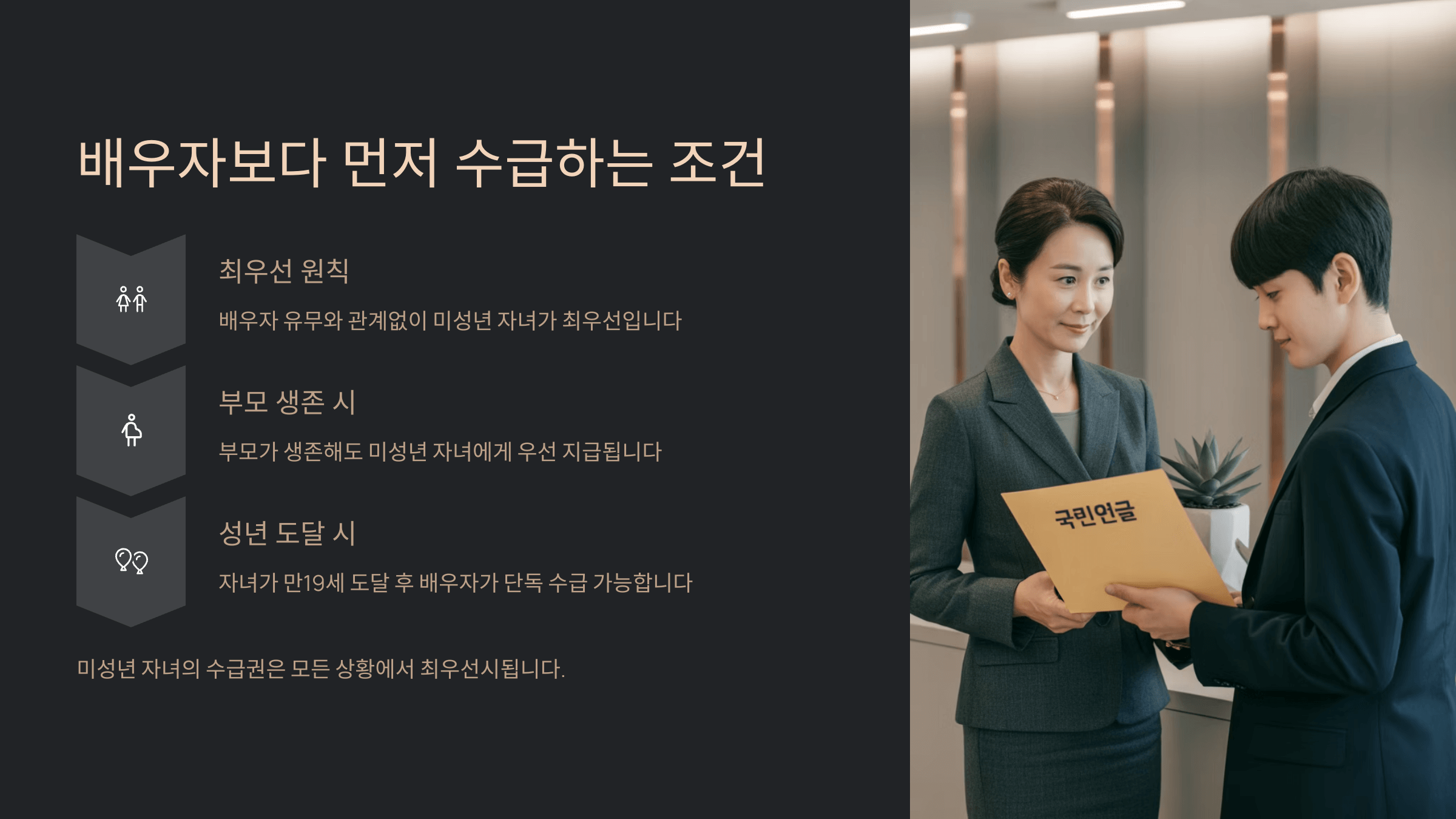 μ μ‘±μ°κΈμ κ°μ‘± ꡬμ±μμ΄ μ¬λ§νμ λ λ¨μ κ°μ‘±λ€μ΄ κ²½μ μ μΌλ‘ μμ λ μνμ ν μ μλλ‘ μ§μν΄μ£Όλ μ λμμ. νΉν μλ κ° μλ κ²½μ°, κ·Έ μλ κ° λ―Έμ±λ μμΌ λ μ μ‘±μ°κΈ μκΈμ μμ΄ μ°μ κΆμ΄ μ£Όμ΄μ§κΈ°λ ν΄μ. νμ§λ§ μ΄ μ°μ κΆμ΄ νμ μ λμ μΈ κ±΄ μλκΈ° λλ¬Έμ ꡬ체μ μΈ κΈ°μ€μ μ΄ν΄λ³΄λ κ²μ΄ μ€μν΄μ.