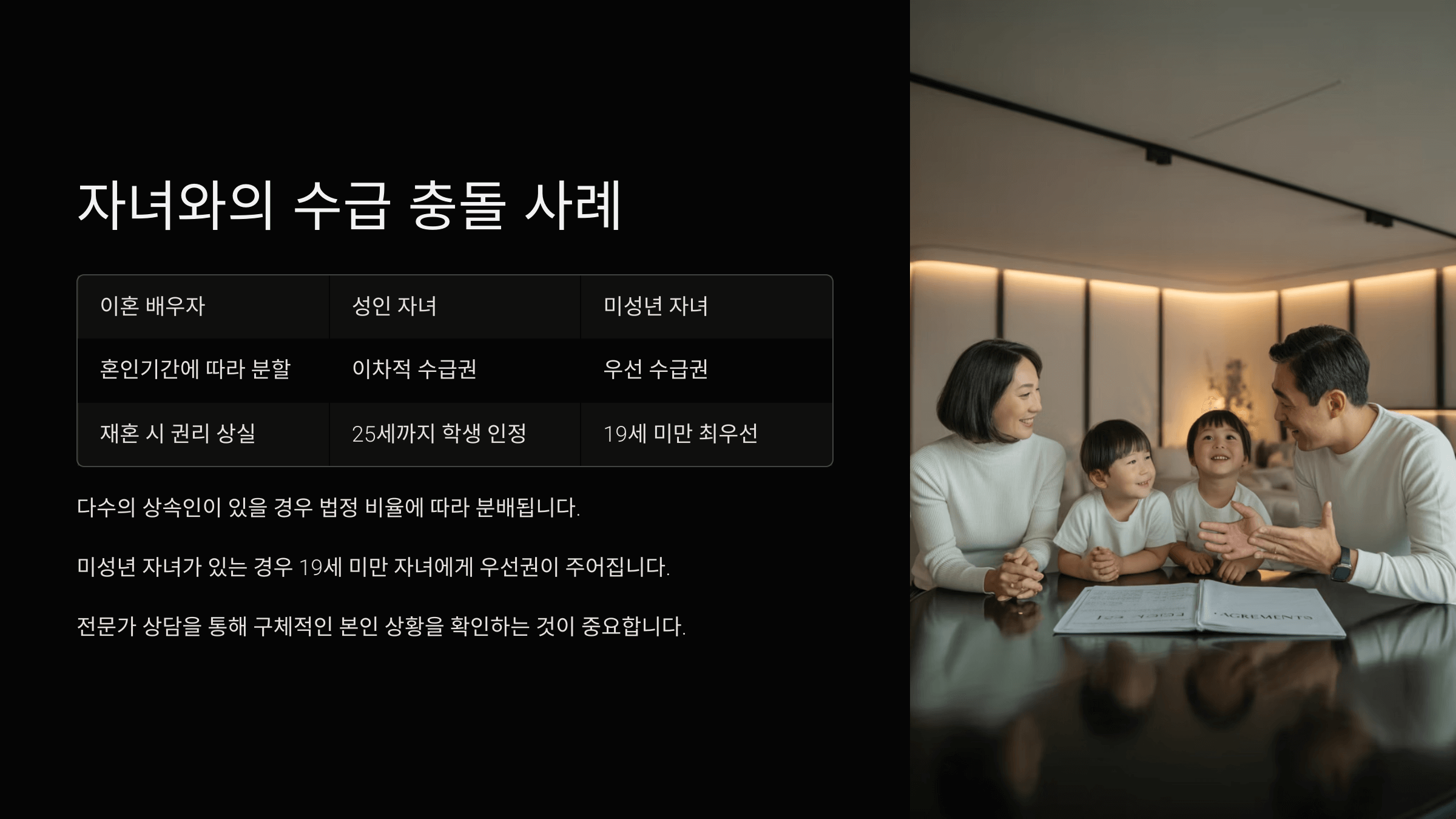์ ์กฑ์ฐ๊ธ ์๊ธ ๋์์๊ฐ ์ฌ๋ฌ ๋ช ์ผ ๊ฒฝ์ฐ, ๋ํ์ ์ผ๋ก ์ดํผํ ๋ฐฐ์ฐ์์ ์๋ ๊ฐ์ ๊ถ๋ฆฌ ์ถฉ๋์ด ๋ฐ์ํ ์ ์์ด์. ๊ตญ๋ฏผ์ฐ๊ธ๋ฒ์ ์ ์กฑ์ฐ๊ธ์ ์์น์ ์ผ๋ก โ์ฌ๋ง์์ ๋ถ์์ ๋ฐ๋ ์ ์กฑโ์๊ฒ ๋์๊ฐ๋๋ฐ, ์ด ๊ธฐ์ค์์ ๋๊ฐ ์ฐ์ ์ด๋๋ ๊ฝค ๋ฏผ๊ฐํ ๋ฌธ์ ์์.