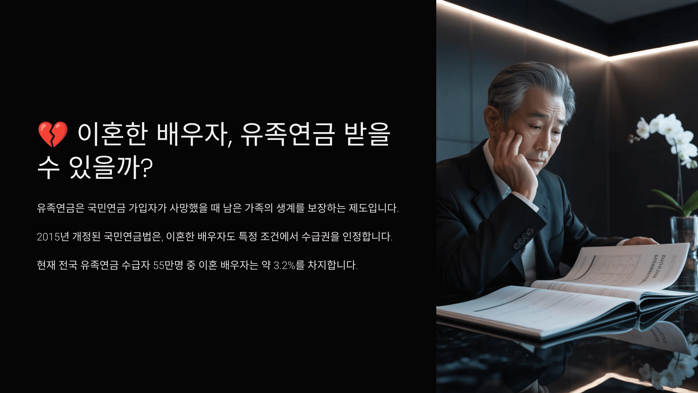 ์ดํผ์ ํ๋๋ผ๋, ๊ณผ๊ฑฐ์ ํผ์ธ ๊ด๊ณ๊ฐ ์ผ์ ์กฐ๊ฑด์ ๋ง์กฑํ๋ค๋ฉด ์ ์กฑ์ฐ๊ธ์ ๋ฐ์ ์ ์๋ ๊ฐ๋ฅ์ฑ์ด ์์ด์. ํนํ ๊ณต๋ฌด์์ฐ๊ธ์ด๋ ๊ตญ๋ฏผ์ฐ๊ธ ๋ฑ์์๋ ์ดํผ ๋ฐฐ์ฐ์์๊ฒ๋ ์๊ธ๊ถ์ด ์ธ์ ๋๋ ๊ฒฝ์ฐ๊ฐ ์๊ธฐ ๋๋ฌธ์ ๋จ์ํ ์ดํผํ๋ค๋ ์ฌ์ค๋ง์ผ๋ก ํฌ๊ธฐํ ํ์๋ ์๋ต๋๋ค.