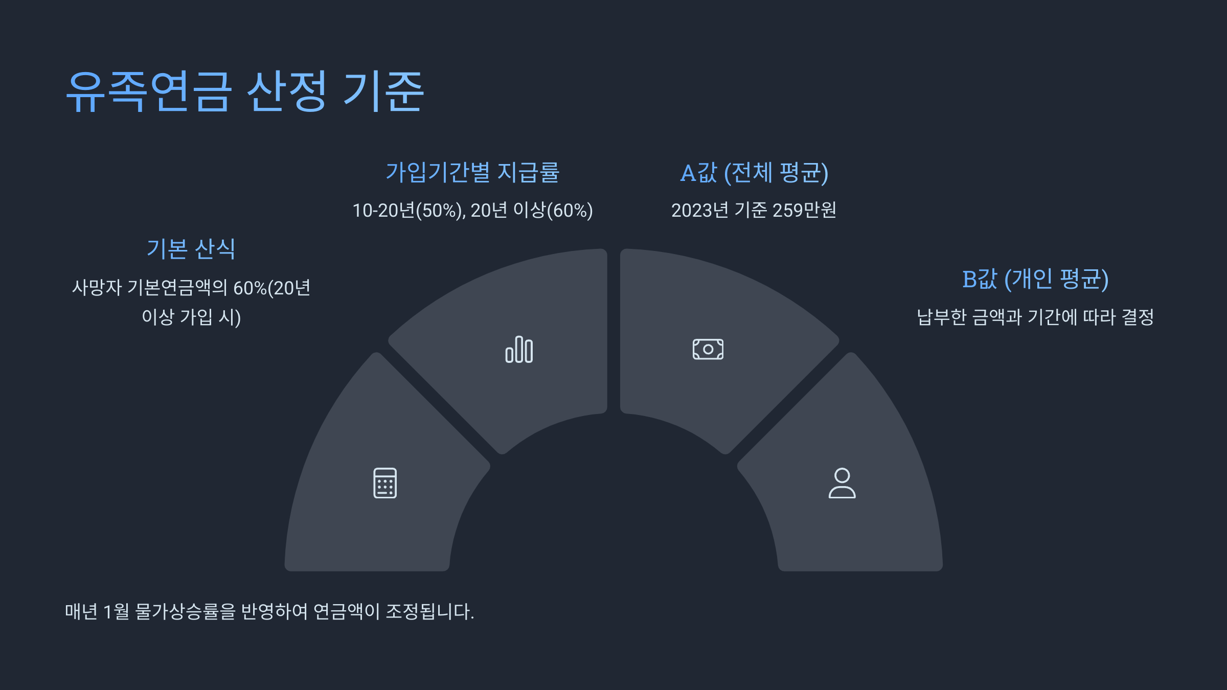 ํนํ, ์๊ธ ๋์์ด ๋๋ ์ ์กฑ์ ์ฐ๋ น์ด๋ ์ฅ์ ์ฌ๋ถ, ๋ค๋ฅธ ์ฐ๊ธ ์๊ธ ์ฌ๋ถ๋ ๊ณ์ฐ์ ๋ฐ์๋ผ์ ํ ๊ฐ์ ๋ง๋ค ์ง๊ธ ๊ธ์ก์ด ๋ฌ๋ผ์ง ์ ์๋ต๋๋ค.