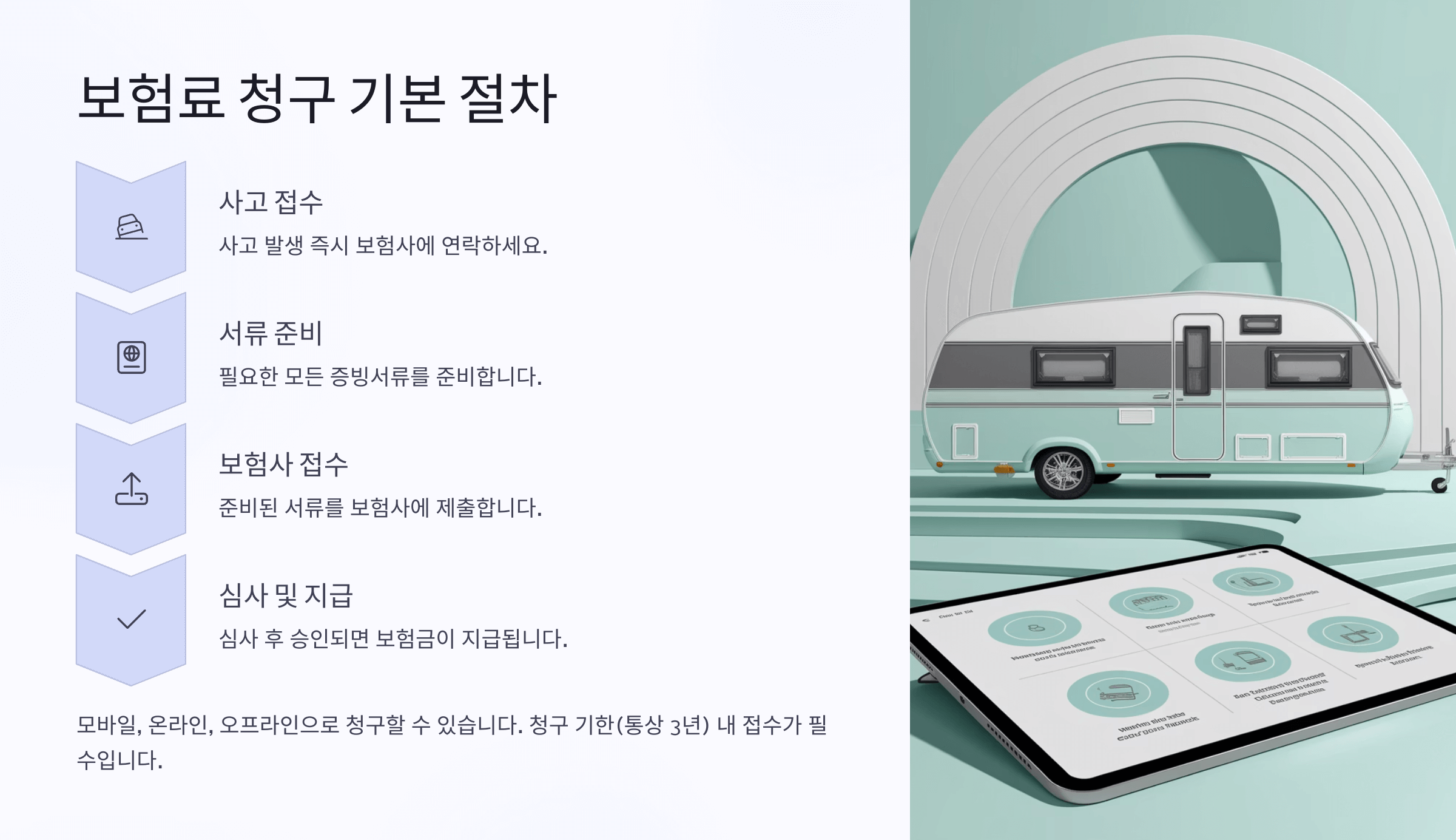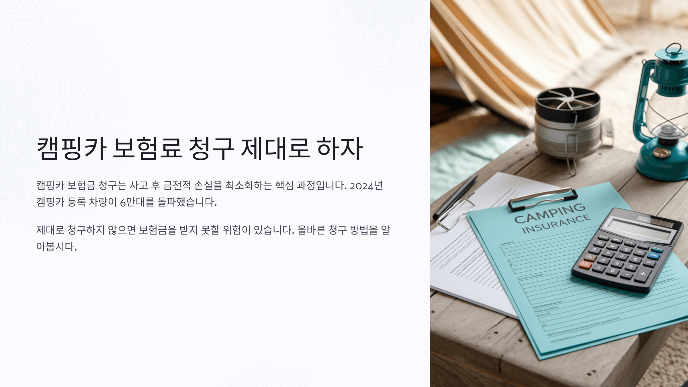 ๐Ÿš ์บ ํ•‘์นด๋ฅผ ํƒ€๊ณ  ์ž์œ ๋กญ๊ฒŒ ์—ฌํ–‰์„ ๋– ๋‚˜๋Š” ๊ฑด ์ •๋ง ๋ฉ‹์ง„ ์ผ์ด์—์š”. ํ•˜์ง€๋งŒ ์˜ˆ๊ธฐ์น˜ ๋ชปํ•œ ์‚ฌ๊ณ ๋‚˜ ๊ณ ์žฅ์œผ๋กœ ๋ณดํ—˜์ด ํ•„์š”ํ•  ๋•Œ, ์ œ๋Œ€๋กœ ๋ณดํ—˜๋ฃŒ๋ฅผ ์ฒญ๊ตฌํ•˜๋Š” ๊ฑด ๋” ์ค‘์š”ํ•˜์ฃ . ์บ ํ•‘์นด ๋ณดํ—˜ ์ฒญ๊ตฌ๋Š” ์ผ๋ฐ˜ ์ž๋™์ฐจ ๋ณดํ—˜๋ณด๋‹ค ์กฐ๊ธˆ ๋” ๋ณต์žกํ•  ์ˆ˜ ์žˆ์–ด์„œ ๊ผผ๊ผผํ•œ ์ค€๋น„๊ฐ€ ํ•„์š”ํ•ด์š”.